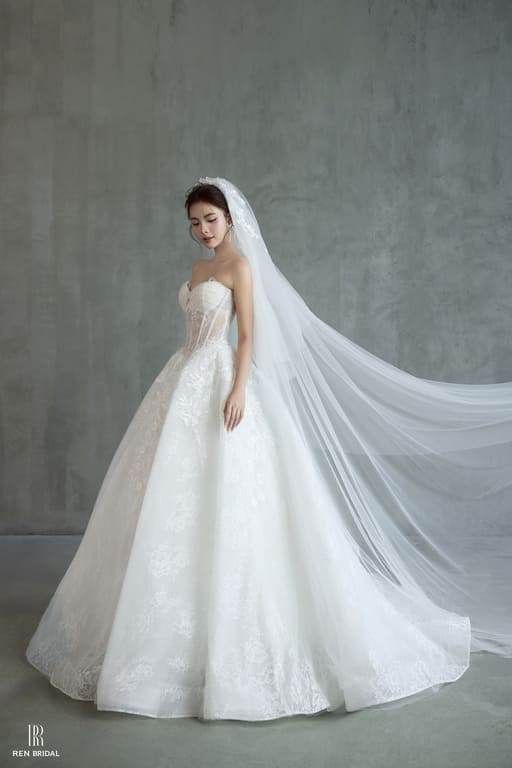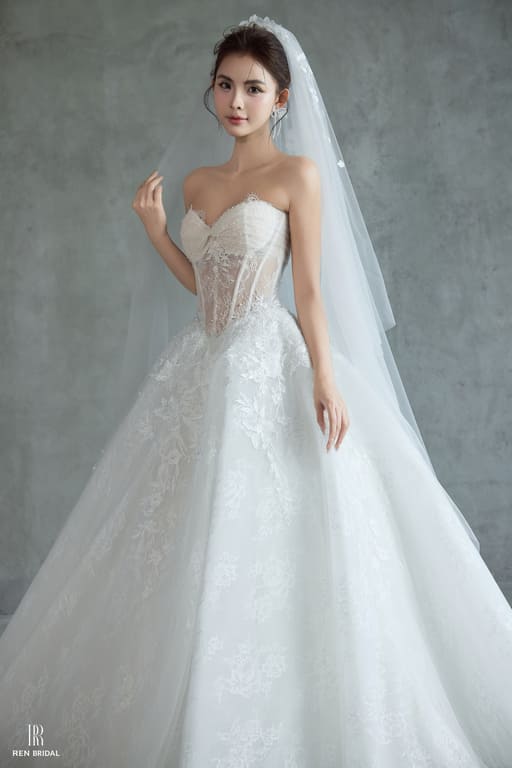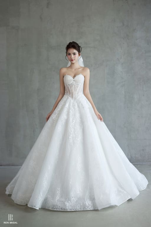 Váy cưới dáng xòe cúp ngực corset ren LUX539-LUXURY là sự kết hợp hoàn hảo giữa nét đẹp lãng mạn, cổ điển và sự tinh tế, quyến rũ. Chiếc váy mang đến vẻ ngoài thanh lịch, yêu kiều, biến cô dâu thành nàng công chúa trong ngày trọng đại. Phần cúp ngực tim duyên dáng giúp tôn lên bờ vai thanh thoát, trong khi thiết kế corset được làm bằng ren xuyên thấu tinh xảo, làm nổi bật vòng eo chuẩn mực và vóc dáng yêu kiều.
